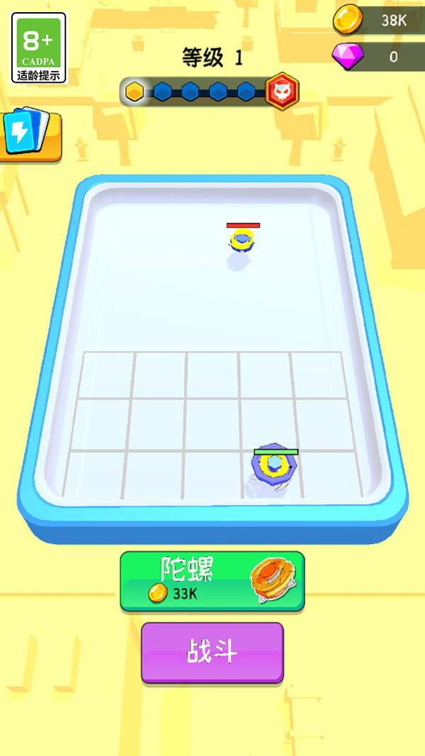 1、陀螺的合成升级与对战闯关玩法中,玩家能够通过购买或合成的方式获取陀螺,对陀螺进行升级后可提升其属性,进而在对战环节击败对手以赢取相应奖励。