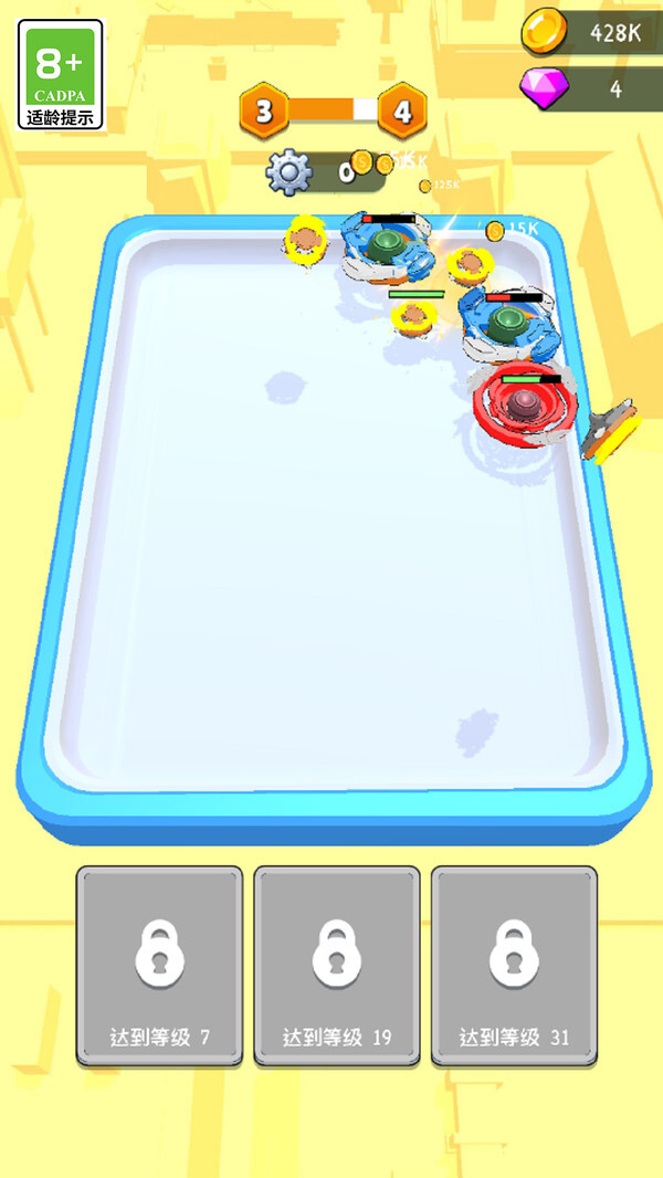 3、玩家要在多轮对战中赢取虚拟奖杯,以此晋级更高段位,解锁专属的陀螺部件和新的竞技场场景,从而提升游戏的可玩性。