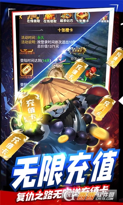 每天护送首领可获取大量好人卡,好人卡可无限寻宝,大奖为充值卡;通关复仇之路可获得大量好人卡,里程碑可获得不同面额的充值卡。