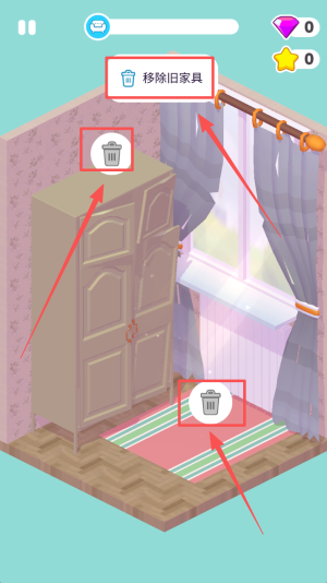 3、要移除旧家具,只需点击物品并将其拖至删除键处就行。