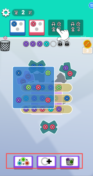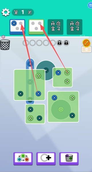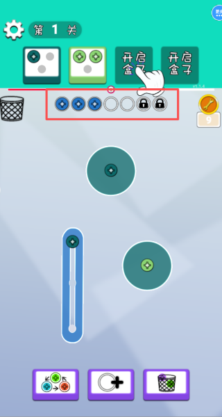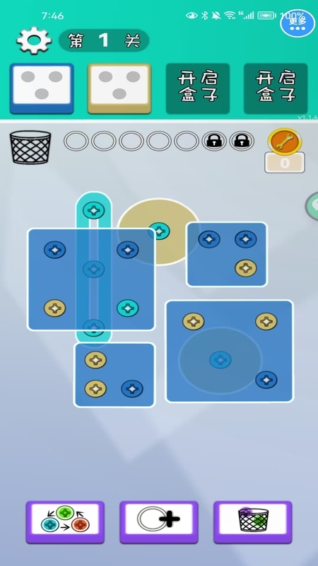 1、从第一关开启挑战,依次拧下螺丝,并将它们放到对应的盒子里。