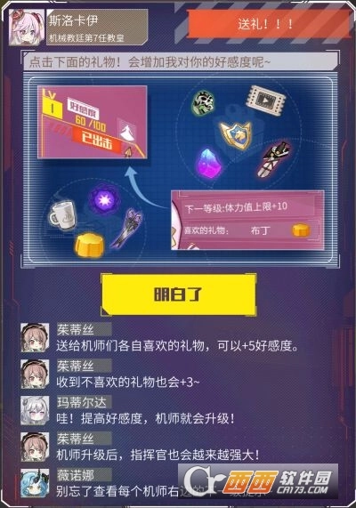 即使是机师不喜欢的礼物,机师们也会勉强接受,增加3好感度。