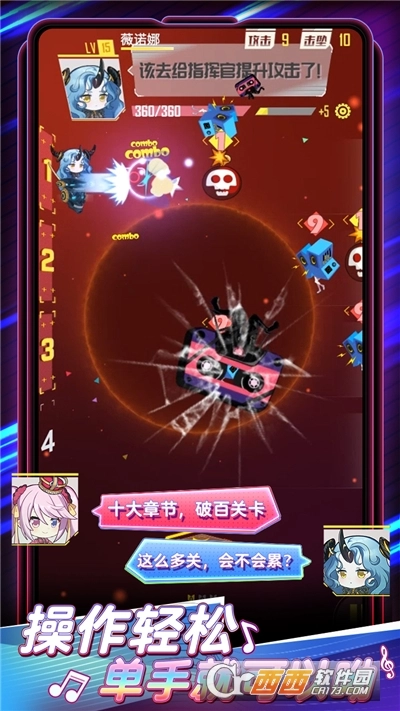 竖屏横版+节奏打击,单手操作,休闲养成。游戏中玩家需要操作机师上下移动击打敌人,敌人还会不停进化,变幻莫测的走位、皮糙肉厚的身板、造型奇特的外观,让您在享受一场不一样的视听盛宴。