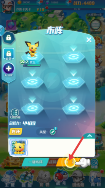 进入游戏后,首先映入眼帘的是满含奇幻元素的地图场景,界面会弹出引导提示(例如让皮丘出战),点击“布阵”按钮即可进入宠物布阵环节,为接下来的战斗提前做好准备,正式开启这场游戏冒险之旅。