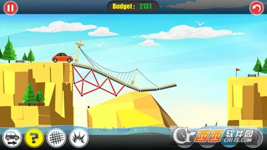 4种建筑材料供你选择,混凝土路面,钢筋,钢索,木板;作为一个建筑师,你需要选择合适的材料,打造出一座完美的桥梁;除此之外,建筑材料的成本也是不一样的,建造桥梁不困难,建造出一座既便宜有结实的桥梁可不这么简单,合理的选择建筑材料,才能造出精品;