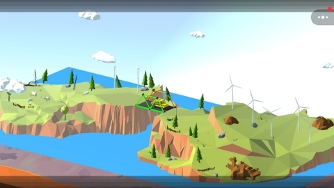 2、运用低多边形的设计风格,借助简洁利落的线条与鲜明的色彩,描绘出山峦、河流、建筑等各类场景构成要素。