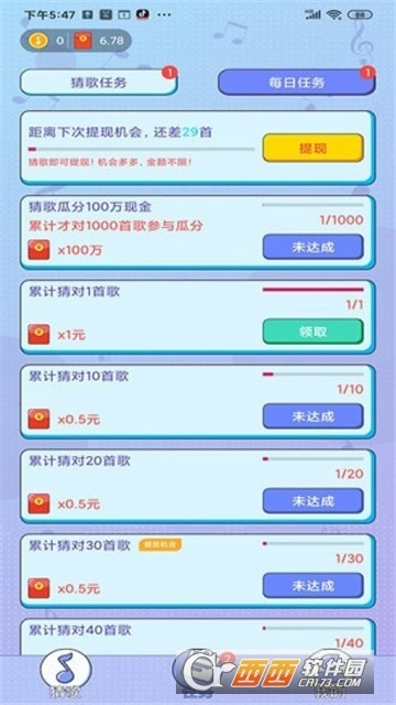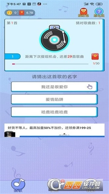 4、在开心猜歌游戏里一较高下并获得积分,挑战游戏排行榜获得福利。