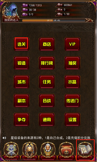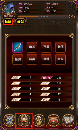 6、玩家在游戏里获取装备后,可点击游戏界面下方的第四个按键来完成装备穿戴操作;