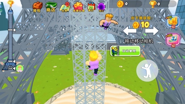 1、通过拖动屏幕来操控角色移动,还能自由切换视角,在不受限制的操作过程中规划攀登的路线。