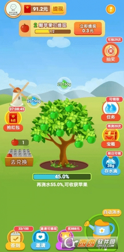 我家果园红包版是一款简单有趣的休闲小游戏。历时一年,用心打造,获得游戏原创大奖!每天浇浇水,就能收获真苹果!
