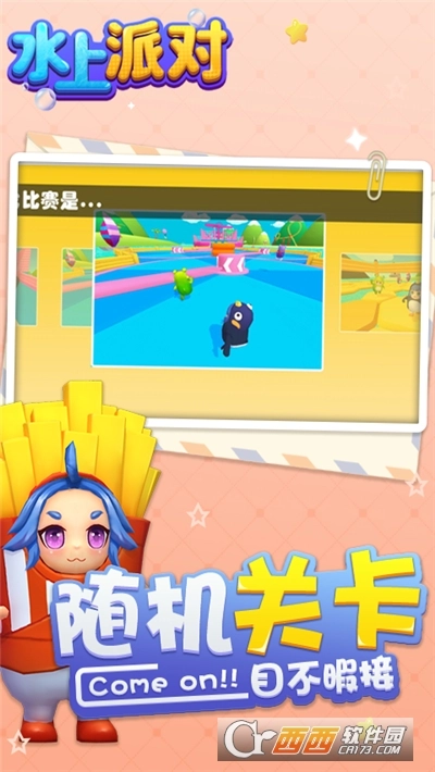 水上派对游戏是一款有着全新Q萌的角色形象展现,这是一款有趣的糖豆人的多人竞技游戏,玩家将控制不同酷萌造型的糖豆人参加刺激有趣的竞技,新颖的关卡设计为你带来多元素游戏融合的绝佳玩法,游戏关卡多多,感兴趣的朋友记得水上派对。