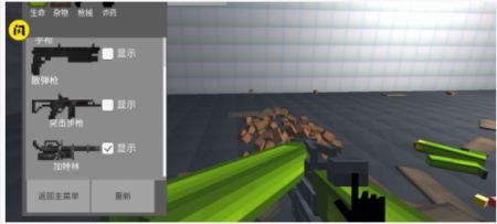 1. 解锁各类枪支武器道具,在像素沙盒世界里粉碎一切物品;