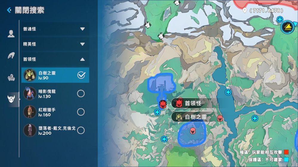 白树之灵位于这片大平台上,每半天会重生一次。运气不错的话能碰到它,也可以借助家园圈的伙伴们通风报信来获取消息。