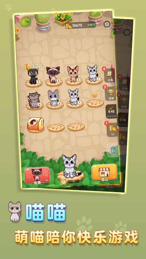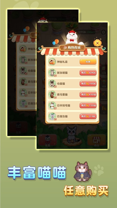 1.9只不同形状、不同颜色的猫等着你解锁,满足你对猫的爱,悉心呵护;