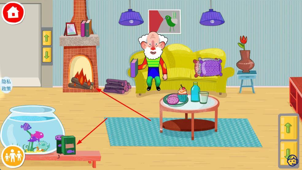 3、在客厅里和老人互动交流,帮忙整理室内物品,还可以探索壁炉、鱼缸等不同区域,通过收集相关线索来解锁更多新的内容。