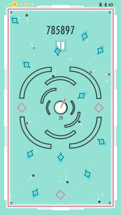 《破壁者》是一款休闲佛系的弹球游戏,只需要简单的点击操作。画面中间有一个炮台,下方的数字是弹药数。炮台会一直围着圆心旋转,红色的是出弹口。全程只能点击屏幕,放出弹药,弹药在碰到障碍后会反弹。每弹到一次四周的墙,墙外的红色条就会消失一段,一直到红色条全部消失,就通关啦!