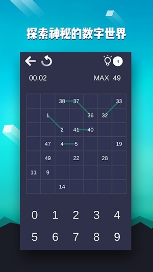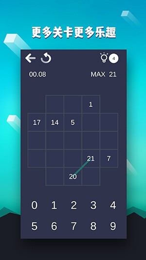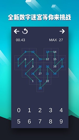 数字迷宫是一款全新的数字解谜与脑力锻炼游戏。你只需在恰当的位置填入合适的数字,让数字依次构成一条连续不断的数字线条。