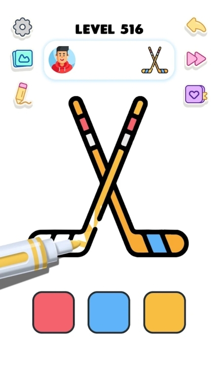 1、挑选心仪的图案关卡,依据提示或是个人创意,用画笔选取相应颜色填充图案区域,以此完成涂色创作。