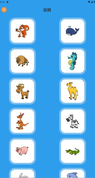 在涂鸦模块里,你可以挑选自己感兴趣的动物图案(像松鼠、鲸鱼之类的),点击进入就能开启涂鸦创作啦,多样的动物主题能满足大家不同的绘画喜好。