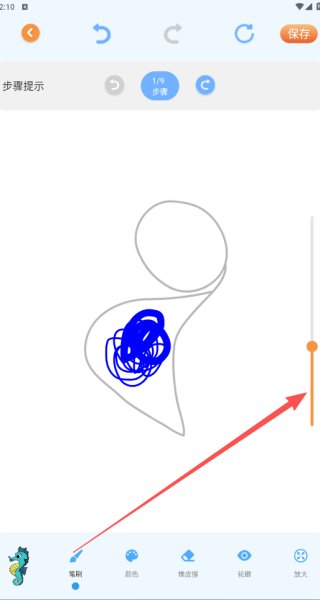 3、进行涂鸦创作时,你可以拖动右侧的滑块来调节画笔的粗细,依据图案的细节需求挑选合适的笔刷大小,这样能更方便地精准绘制,并且还能借助步骤提示一步步完成创作。