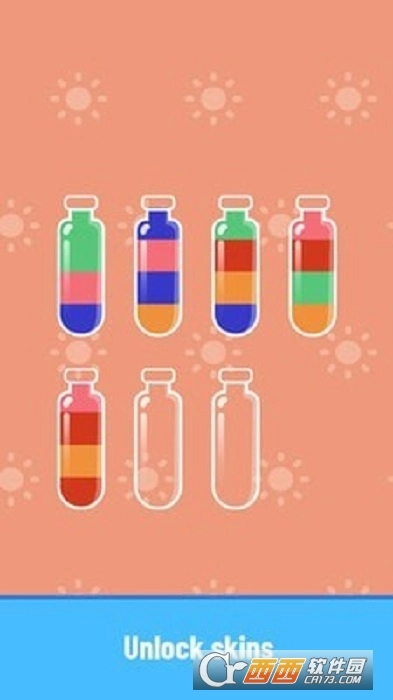 倒水排序中需要有趣的上瘾和益智游戏!对杯子中的颜色进行排序,直到所有颜色都相同为止。一个具有挑战性但又轻松的游戏-倒水-训练您的大脑。玩家需要快速将相同的水彩画划入每个带有彩色线条的水管,您应该快速地将水划入水,然后将水倒入每个水管以完成游戏。