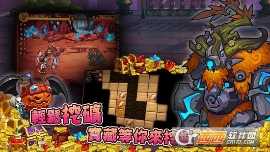 觉得只是挂机很无聊吗? 没关系!这里还可以挖矿寻宝,有各式矿石以及宝物等你来发掘!但是,要小心喔!潜藏在地底的魔神正在蠢蠢欲动着...