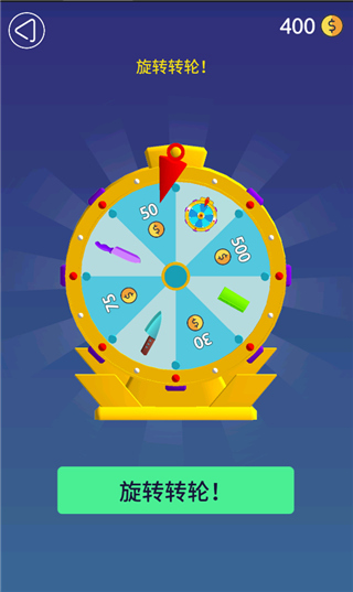 5、页面下方设有一个抽奖转盘,通过它可以赢取金币奖励、小刀等物品。