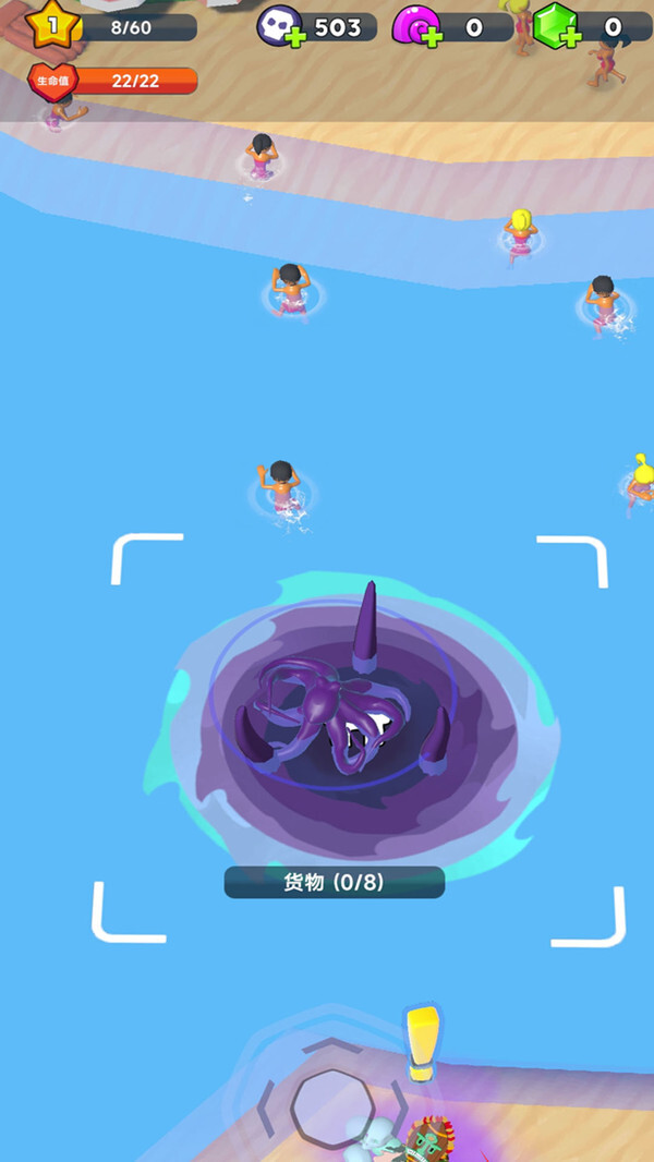 1、玩家操控章鱼怪兽完成移动与吞噬动作,借助触手的伸展和收缩来达成近距离抓取,遇到远处目标时能够发射触手进行缠绕拖拽。