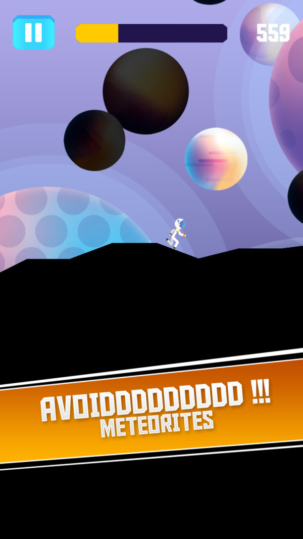 在奔跑冒险的过程中,还得灵活操控宇航员,避开掉落的陨石。