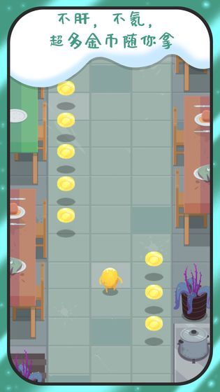 3、在奔跑逃亡的过程中,可以收集桌上的金币,用来购买道具!