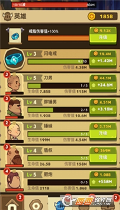 不断升级攻击,突破海关,杀死难度副本剧情boss,购买英雄,然后解锁更多的等级。