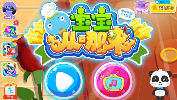 1、进入首页后,点击“开始”键就能开启宝宝的学习之旅,直接点击进入即可。