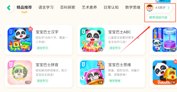 3、进入推荐板块后,能看到宝宝适用年龄相关信息,点击进入该页面,选择对应的宝宝年纪就可以了。