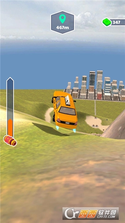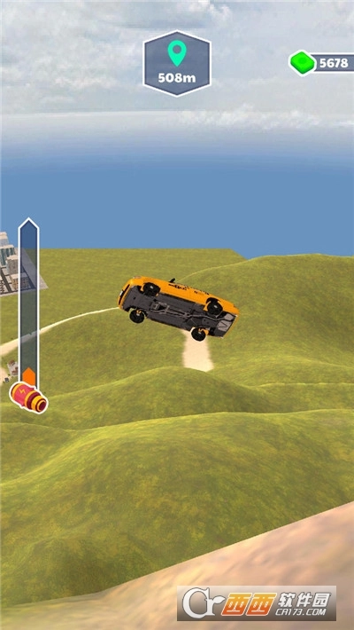 3、借助平台冲刺才能飞起来,飞行的距离跟你的车速有很大的关系。