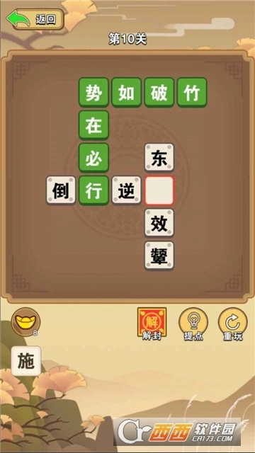 游戏由浅入深的将成语组合成填空游戏,游戏音效优美,操作简单方便,老少皆宜,轻松丰富个人的成语知识。