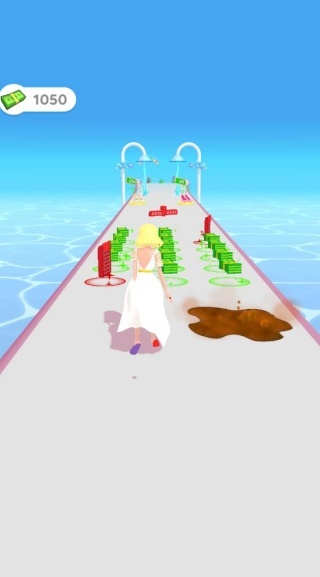 在跑酷收集金币的环节中,要避开地面污渍之类的障碍,并且优先拾取绿色金币堆和带有增益效果标识的道具,争取积累更多的资金。