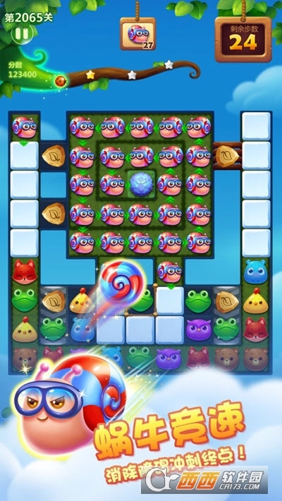 滑动手指让三个及以上的同色小动物横竖相连即可消除,完成每关的指定消除目标即可过关!