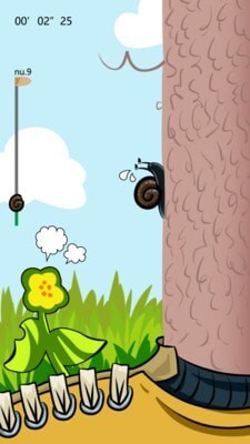 1、蜗牛开始从树下一步一步向上攀爬,当遇到萝卜时必须迅速将其接住;