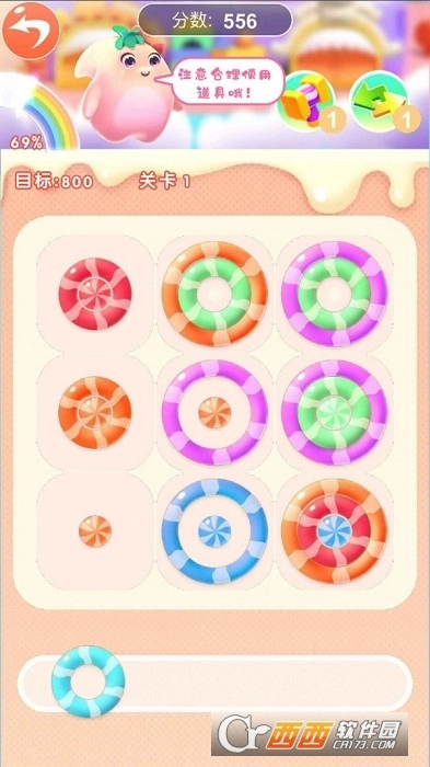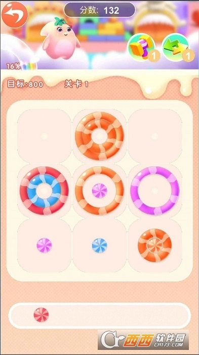 每个关卡需要消除一定数量的甜甜圈才能通过,尽可能少用步数,刷新名次;