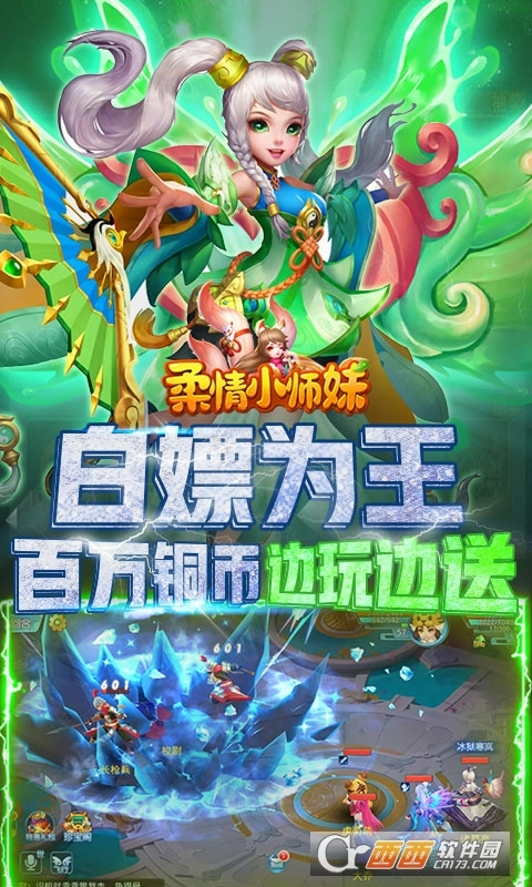 《柔情小师妹(送)》是款特别为回合制玩家定制的回合。上线送银锭*66666、铜币*288w!升级再送神将、灵宠、羽翼!次日就送珍兽-玉兔!全新高清画质,一览Q版本回合风采,回味经典剧情,Q软人物萌翻全场,超萌战宠坐骑,百变的武将伙伴,伴你如梦似幻畅游梦幻风回合!超自由的集市贸易,好玩的策略副本,激烈的跨服pk团战,任你闯荡驰骋!更有魅力翅膀时装,真实结拜情缘系统,不容错过的趣味玩法,尽在《柔情小师妹(送)》!