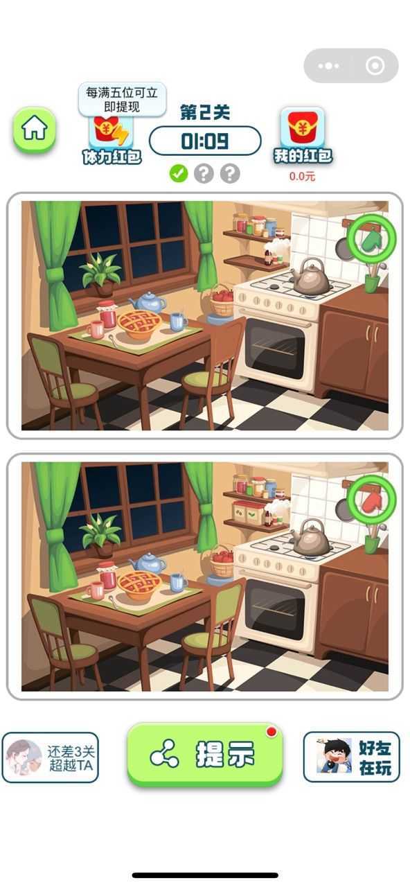 2、每个玩家都得在规定时间内找出所有不同之处,只有这样才能成功领取红包。