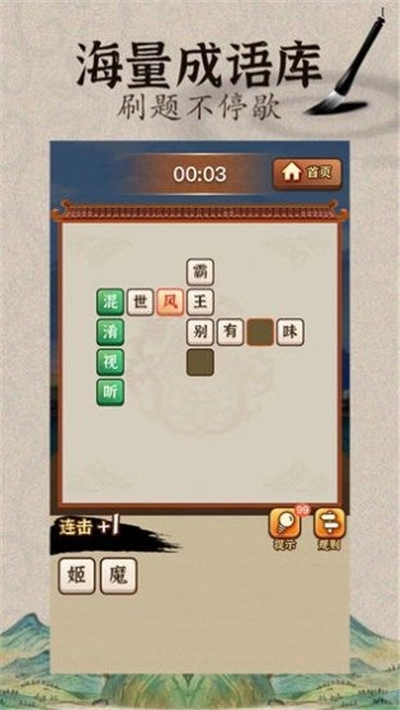 把游戏与成语巧妙融合,将填词和接龙的玩法结合起来,让你在玩游戏的过程中,还能顺便认识不少成语。
