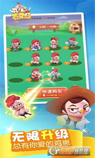 4、精致细腻的画面场景,带来别具一格的闯关体验,还能培育出各式各样不同品种的小鸡。
