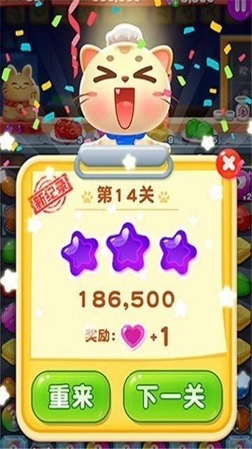 3、萌猫消消乐红包版这款游戏设计了多样的关卡供玩家挑战,随着关卡的推进,游戏难度也会逐渐提升。