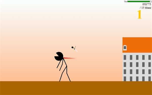 我们在游戏里扮演一个小火柴人,目标是击败那些体型庞大的火柴人巨人。操作方式很简单:点击屏幕就能让我们的小火柴人飞起来,点击的位置就是他飞行的方向。不过巨人的身体十分强悍,普通攻击根本伤不到他们,只有精准点击巨人的后颈部位,才能对其造成致命伤害,将他们成功消灭。