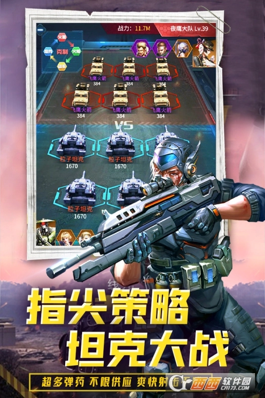 风靡军事玩家的坦克策略攻城战争游戏《迷你装甲》 震撼登场!在这史诗般暴烈的战斗中,献上热血,为你的荣耀而战! 迷你装甲是一款真实战争题材,以二战为背景的团队多人对抗攻城,游戏采用的是即时制顶视角的战斗方式,玩家作为一名指挥官,将驾驭各种经典如 M1A2,99式,梅卡瓦,虎式等多款自二战以来的著名战车参战,多达上千种的战车,每个都能养成到最高品质,满足你的收集癖好。
