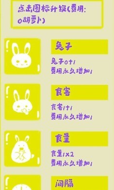 2.可以通过购买升级的方式,提升胡萝卜的产量与品质,这样兔子们就能吃得更开心了。