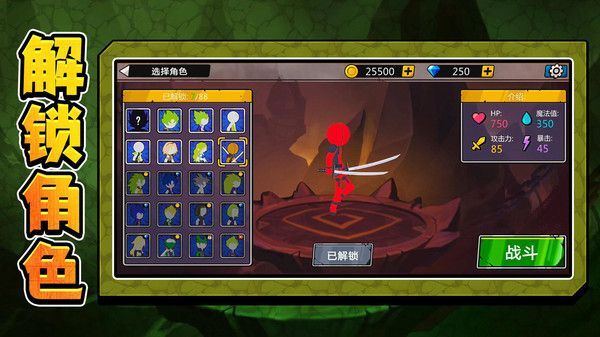 1、别具一格的火柴人造型,拥有强劲的战斗能力,由你召唤加入紧张刺激的战斗。