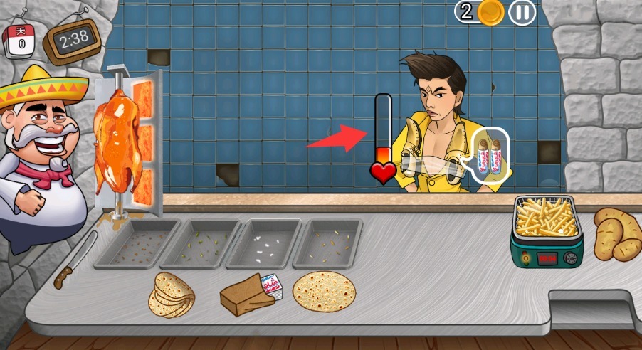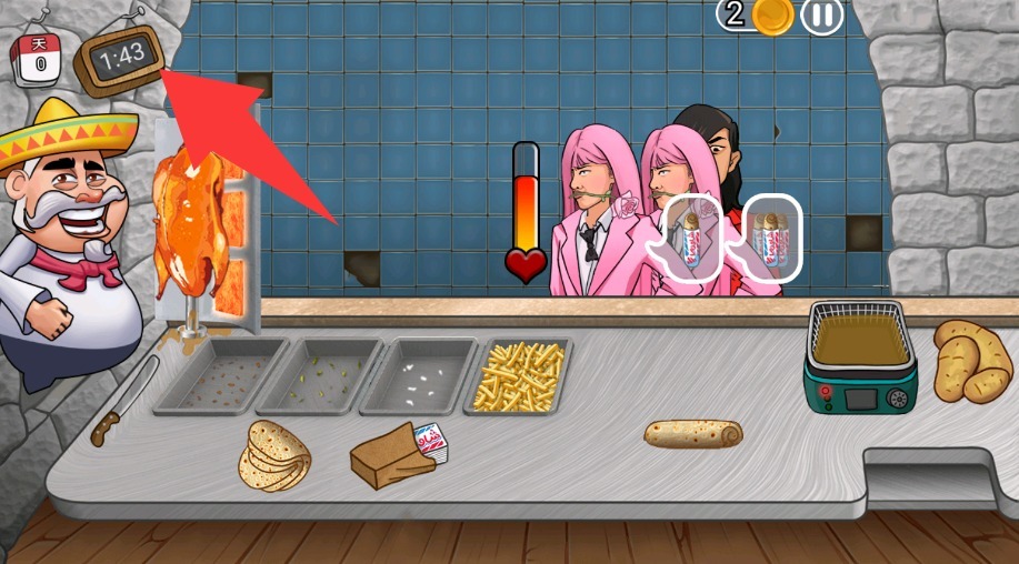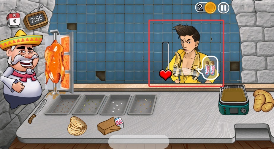 3、旁边那个表情条代表客人的耐心值,要是等得太久他们就会离开,所以动作一定要迅速利落些。