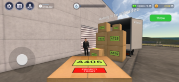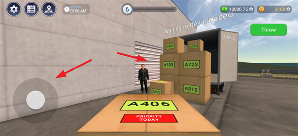 1、需要直接操控角色移动,接着迅速搬运包裹,把它放到卡车上就可以了。